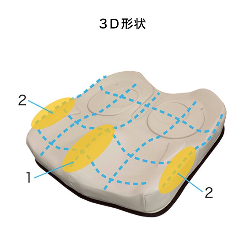 身体にフィットする立体形状が、優れた体圧分散性と安定した着座姿勢を実現。